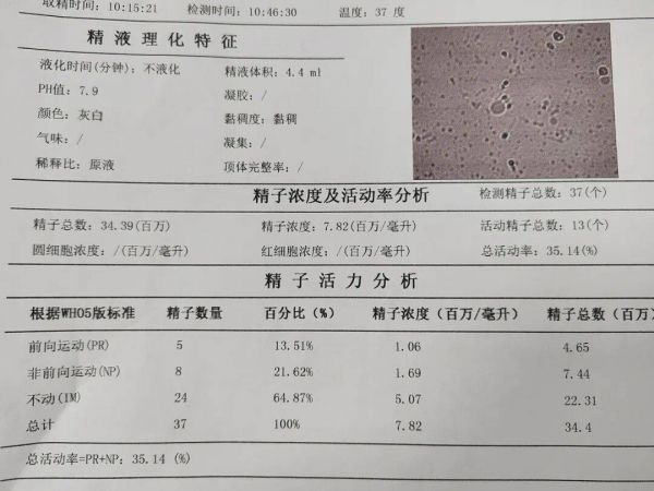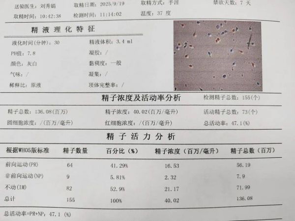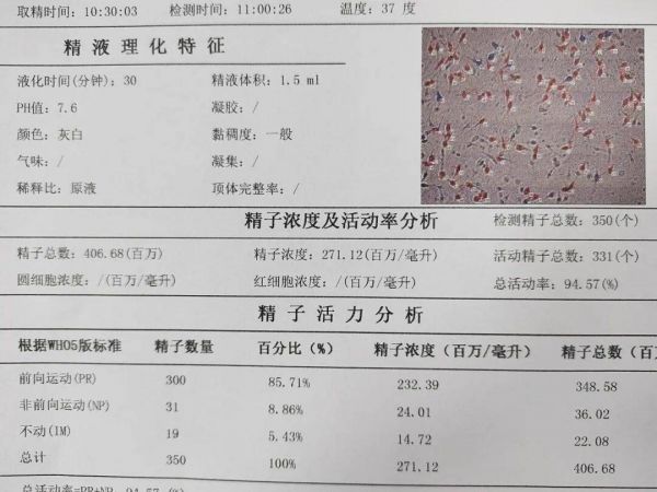 报告里还有几个辅助项可以留意:精液液化时间,pH值正常参考值7.2-8.0,白细胞:正常参考值<1×10?/ml,白细胞太多,说明精液里有“炎症小兵”,可能会影响“小蝌蚪”的生存环境。