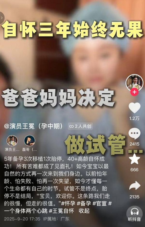 41岁演员王冕官宣怀孕:5年备孕3次移植1次胎停,自怀成功!曾为备孕暂退圈