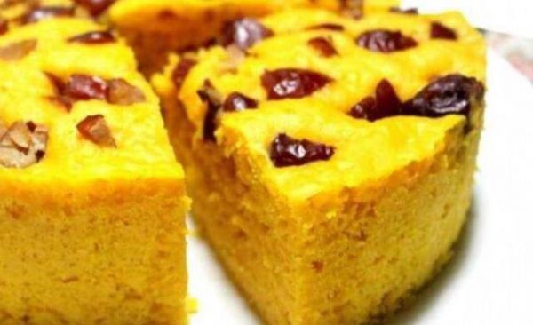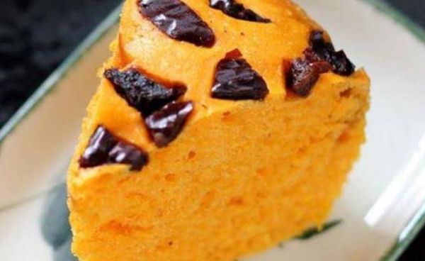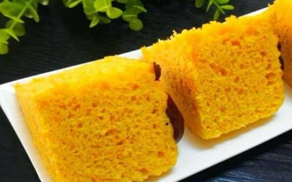 第四步,接着上锅蒸,水烧开后中火蒸25分钟,南瓜发糕就做好了,取出切块就可以食用了。