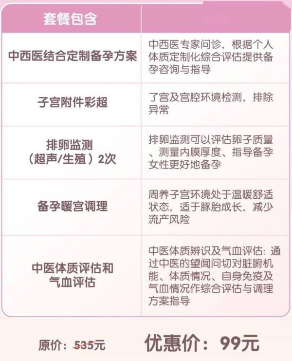 妇儿中西医专家一站式备孕方案,检查低至99元,多维度帮您破解备孕难题,帮您实现龙年生龙宝的美好愿望。