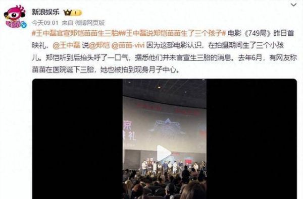 娱乐圈的新鲜事总是让人津津乐道,尤其是一些明星的喜事更是能够让粉丝为之欢呼,近日,娱乐圈当中接连不断传出喜讯,先是王中磊在电影《749》首映礼透露,郑恺与苗苗在拍摄期间生了三个小孩,话外意思便是三胎,紧接着张檬与小五也官宣怀孕喜讯,一时间让粉丝不知道该恭喜谁。