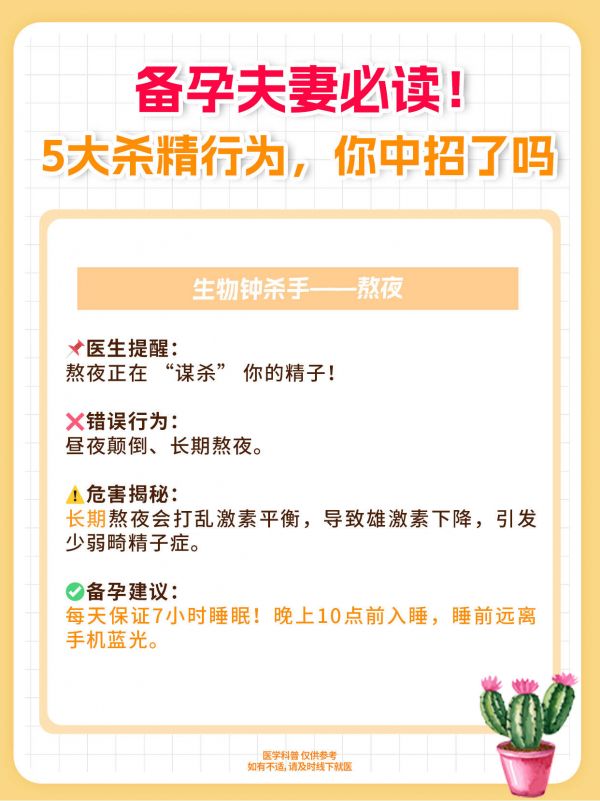 危害揭秘:长期熬夜会打乱激素平衡,导致雄激素下降,引发少弱畸精子症。