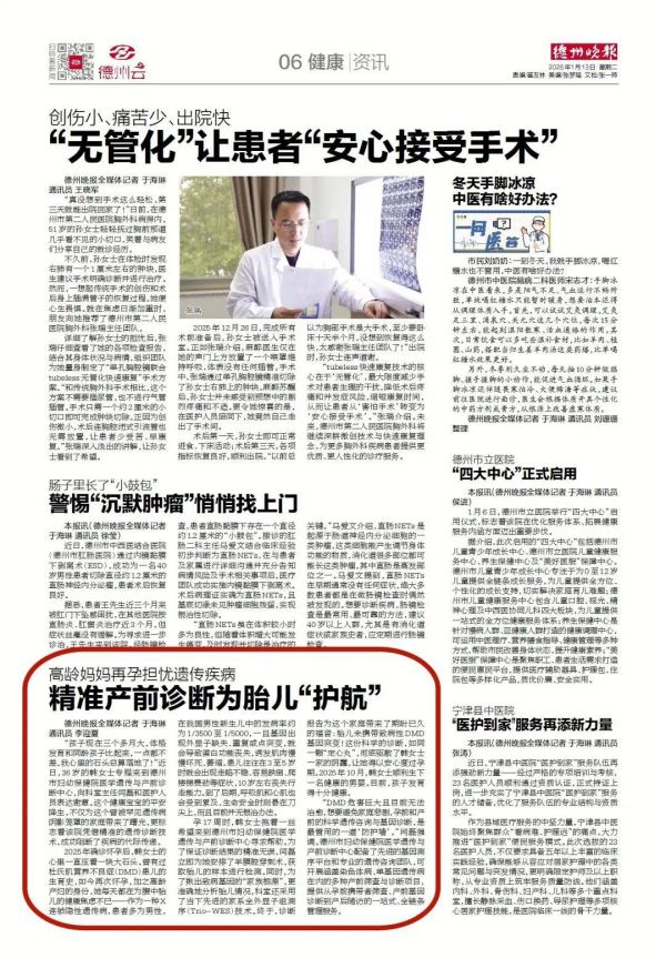 【媒体报道】高龄妈妈再孕遇基因难题!德州市妇幼保健院精准产前诊断 护航“新生命”降生