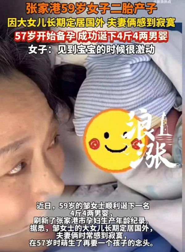 59岁女子成功诞下4斤4两男婴,产妇:因大女儿长期定居国外,夫妻俩感到寂寞,57岁开始备孕