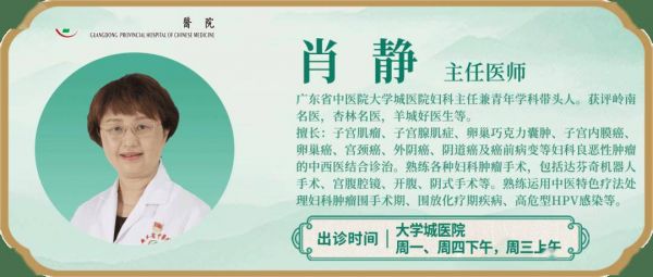 【精准妇瘤】中西合璧,刚柔并济,症病同治。广东省中医院大学城医院肖静主任团队为您深入解析妇科良性与恶性肿瘤的诊治经验,分享中医调养之道。人生无“瘤”更精彩!