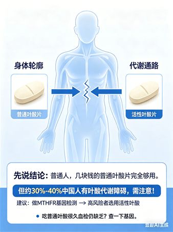 划重点: 不是所有人都需要活性叶酸,但如果你吃普通叶酸很久了,血检还是显示缺乏,可以考虑查一下基因。