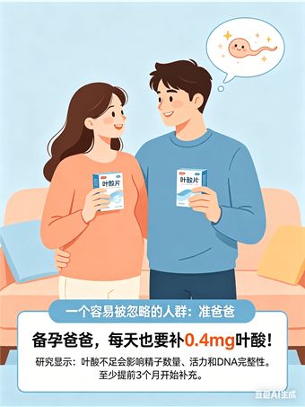 研究表明,男性叶酸不足,会影响精子质量——包括精子的数量、活力和DNA完整性。换句话说,叶酸缺乏的精子,可能携带着不完美的遗传信息。