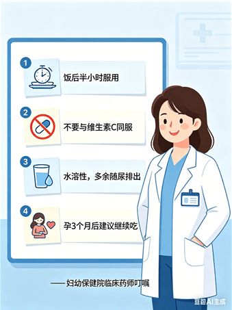 2.和什么不能一起吃?维生素C会影响叶酸吸收,建议间隔2小时以上服用。某些抗酸药、抗癫痫药也会影响叶酸代谢,服药期间请咨询医生。