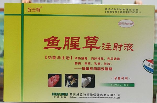 2.1 安痛定注射液10 ml,氨苄青霉素0.1 g,地塞米松磷酸钠注射液5 ml(5 mg),混合肌注。鱼腥草注射液20 ml,肌肉注射。