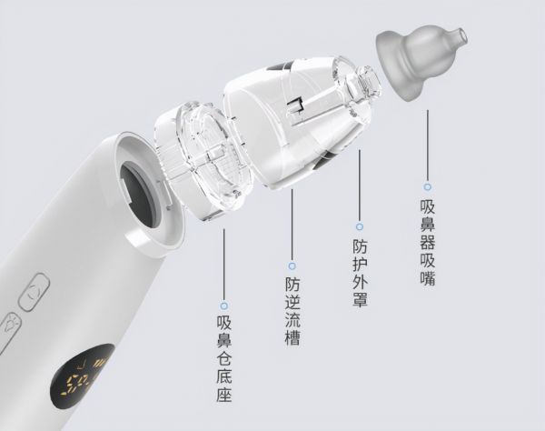 在给小宝宝吸鼻涕的过程中,为了防止倒吸,该吸鼻器还采用了独立存储仓,单向进气,防护外罩和防逆流槽,防止分泌物逆流,不用担心鼻涕吸到嘴巴里。另外,进气孔置于存储仓外侧,也可避免分泌物进入机身,损坏吸鼻器。