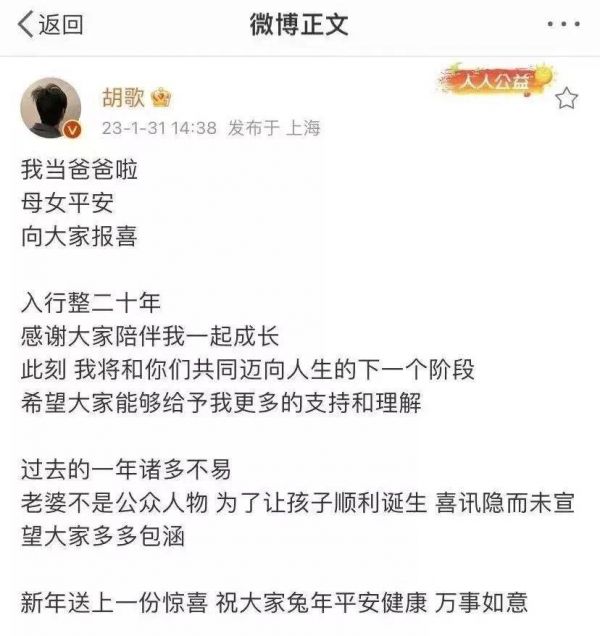 近日,“万年伴郎”胡歌官宣生女,那些年操碎了心的网友纷纷送上祝福。